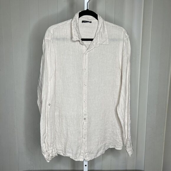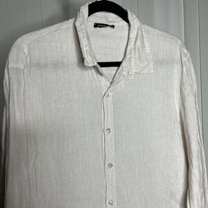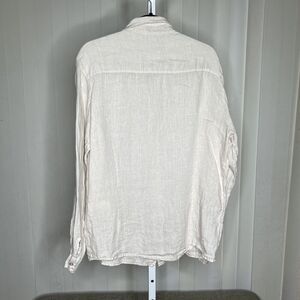 Linen Men Casual Button Up Shirt Ivory Roll Up Sleeve Made in Italy Size 2XL