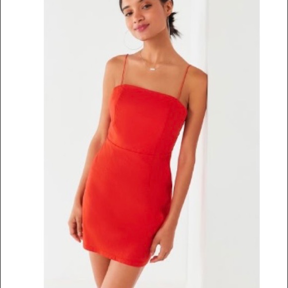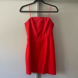 Super cute linen stretch body con mini dress in red!! Great condition. Only worn a couple of times.