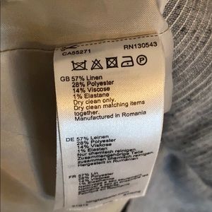 Material content: 57% linen 28% polyester 14% viscose 1% elastin