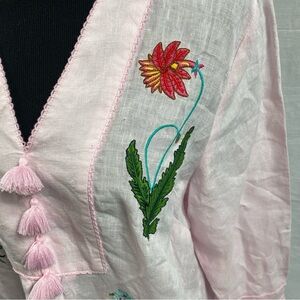Linen NoLoGo Linen Chic Small / Medium Floral Pintuck Midi Tunic Dress Embroider