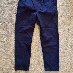 Small Goodlife Navy Linen Pant. Relaxed, drop crotch fit
