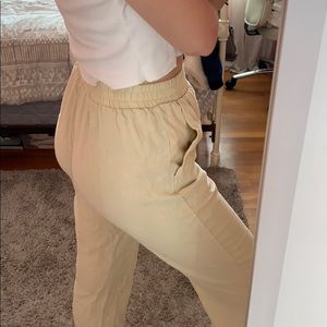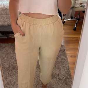 Cute beige linen pants with a slight crop. Elastic waist band and pockets.