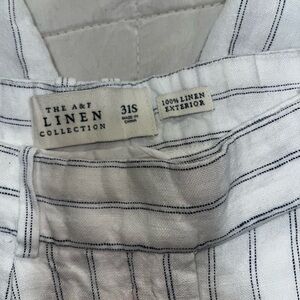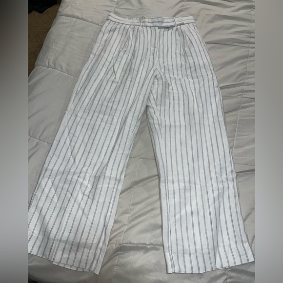 Abercrombie linen pants. Double lined so not see through. I love them they just don’t fit anymore. Short size length.