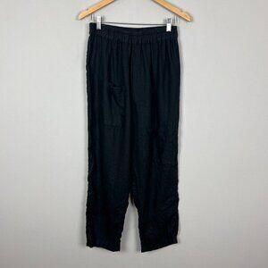 Linen Pants Womens Large Black Lagenlook Minimalist Straight Leg Cropped Stretch