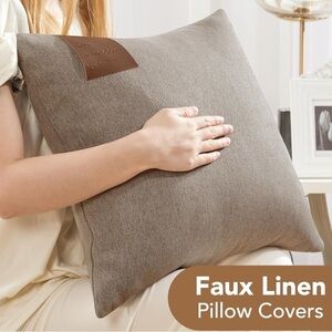 NWOT Linen Pillow Covers Linen Pillow Covers (pillows not included, only covers) 20x20 with faux Leather Label, 2 Pack, Taupe