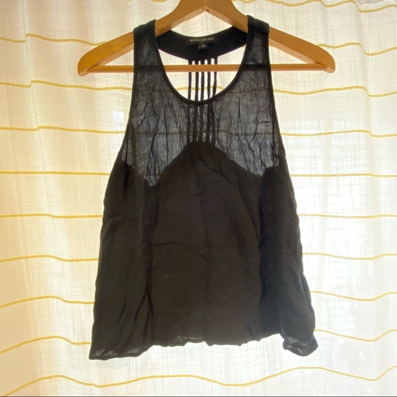 Size Petite Medium. Airy, light linen top with the coolest racer back detail.