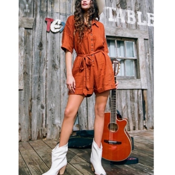 Great condition Spell and the Gypsy linen Rani romper, rust orange classic fit