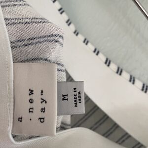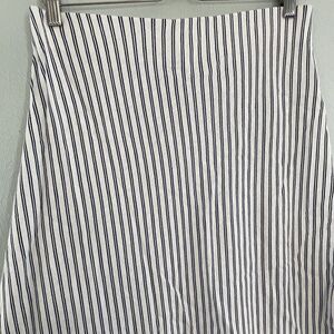 Linen Rayon Blend Pinstrip Maxi Skirt Navy White Pull On Medium
