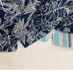 Great used condition, beautiful striped colorway on one and a tropical Hawaiian floral leaf print on the other. 4 pockets- 2 in front 2 in back