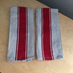 Linen Red Kitchen Towels Vintage Stripe Holiday Wreath Graphics Joy LOT of 2 NEW