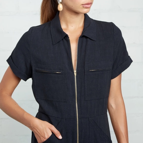 Worn 2 times and in excellent condition. Black linen blend with gold hardware.