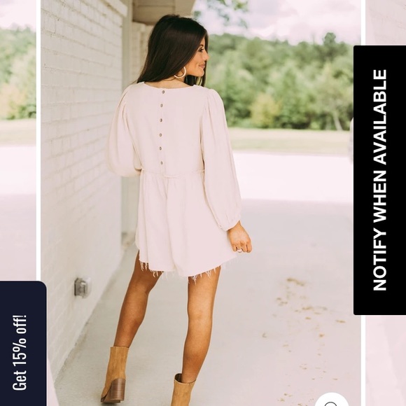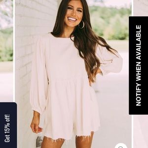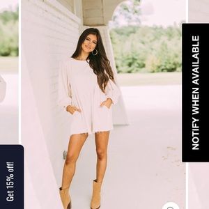 From These Three Boutique. Currently sold out. Size large. Long sleeve with pockets and raw edge. Button detail on the back. More of a cream color! Brand new never worn