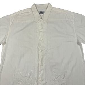 Linen Shirt Men's XXL Vintage Smokey Joes Embroidered Floral Design White Button