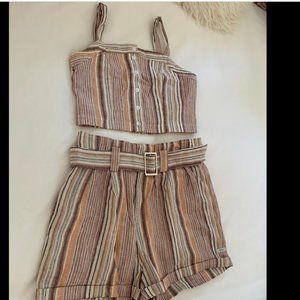 Linen short and cropped top set. Pretty neutral colors light airy. Perfect for summer. Lightly used. Great condition. Bottoms are XS top is a small. Lira purchased