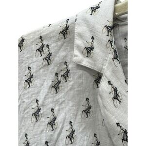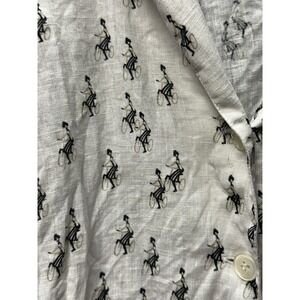Linen Size 14 W Button Down V Neck Collared Blouse White w/Ladies On Bikes