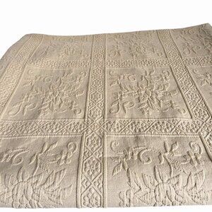 Linen Source Matelasse Beige Cotton Coverlet Twin Bedspread Portugal Made 80x110