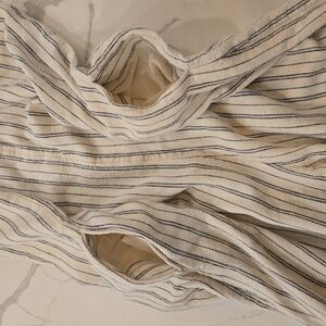 Linen Striped Wide Leg Boho Cottage Jumpsuit Womens Size Medium Black Cream