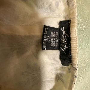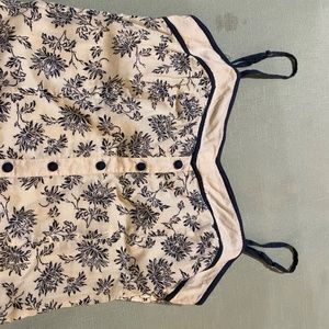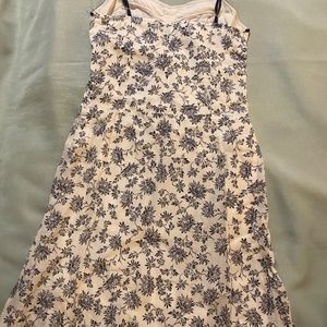 100% cotton Sun dress, ivory and navy blue. Size L, but can fit a medium. Spaghetti straps are adjustable. Never worn.