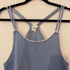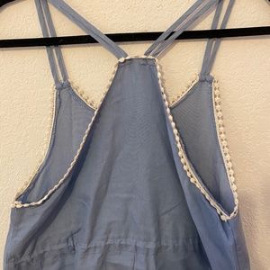 This comfy sundress is perfect for the summer. It is so lightweight and the drawstring in the middle does work. the double straps make it so fun and the ruffle detail keeps it classy. Perfect as a cover up or throw on a sweater and sandals for a night out