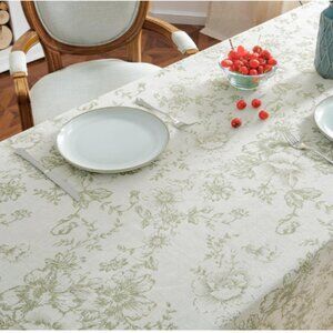 Linen Table Cloth Olive Green Floral Toile on Beige 53 x 69 Rectangle Tablecloth