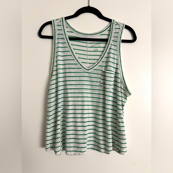 Universal Threads green and white linen tank top. Cute little front pocket detail ✨ only worn once, good condition! Size XXL