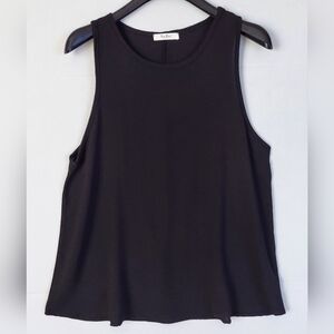 Linen Tank Top Womens Large Black New Round Neck Sleeveless, Tres Bien
