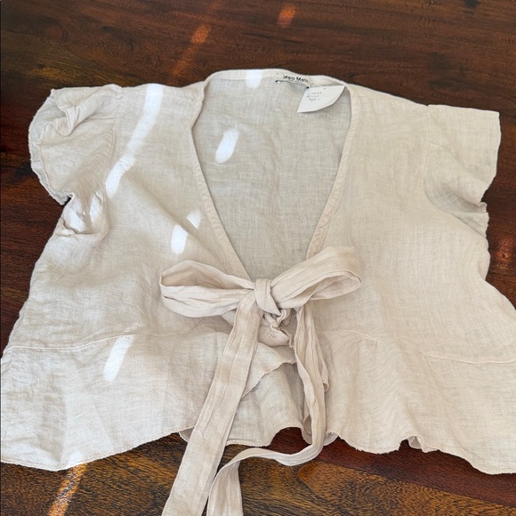 Meo Meli NWT beige linen top with tie and organic edges . Perfect for over a t shirt and to style with jeans