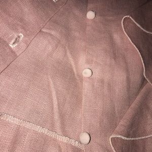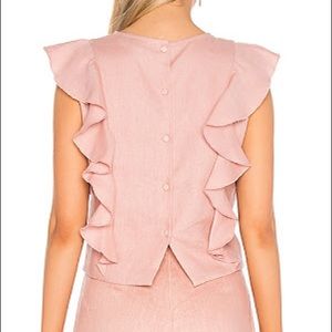 beautiful pink linen button up blouse with ruffles