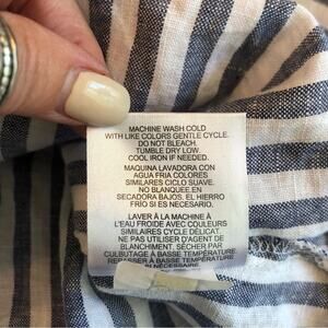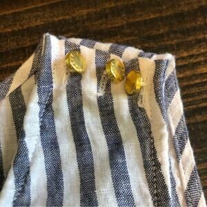 Linen Striped Sleeveless Tunic Tank Casual Coastal Nautical Women’s Size Small Gold Tone Buttons On Each Sleeve