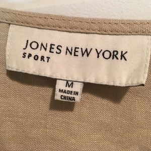 Beige linen tunic from Jones New York. 100% linen with slits on the side so it's loose on the hips. Size medium. I'm a six and would definitely fit an 8 or even a small 10. Worn twice.