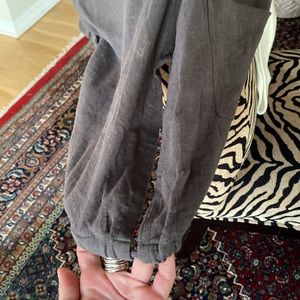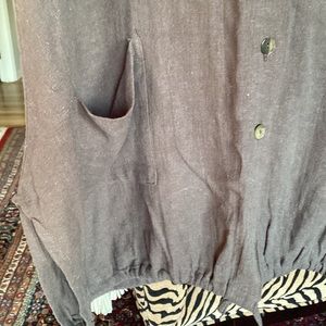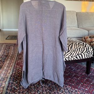 Linen tunic by Just Jill. Medium fits more like a large. Soft cocoa, brown taupe in color with a round neck, wide, elbow-length sleeves, two front patch pockets, and a drawstring wide hem. previously owned/worn. This is the perfect toss-on over leggings or jeans.