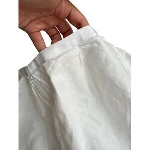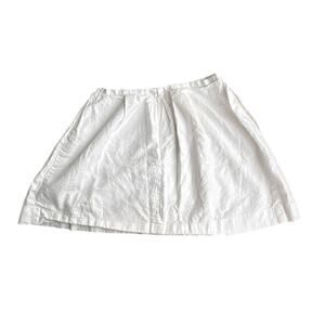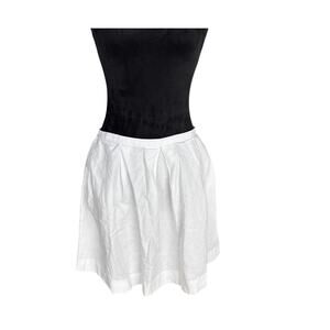Vintage-inspired Y2K white linen mini skirt with ribbon trim and side pockets. Tennis skirt silhouette with a flattering A-line shape. Waist measures 29” and length is 16.5”. Lightweight linen makes this piece ideal for warm weather styling, festivals, or layering into spring and summer looks. Minor discoloration noted (see photos) but not noticeable when worn. Perfect with cropped tops, cardigans, or oversized blazers for an updated take on tennis-core and Pinterest Predicts 2025 trends like Academia, Heritage, and Cottagecore.