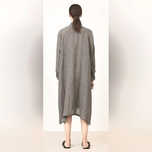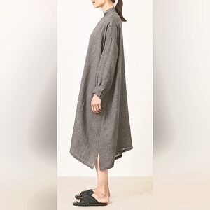 Linen Wide A-Line Collarless Shirt Dress RARE Boho Comfy Designer Gift Lagenlook