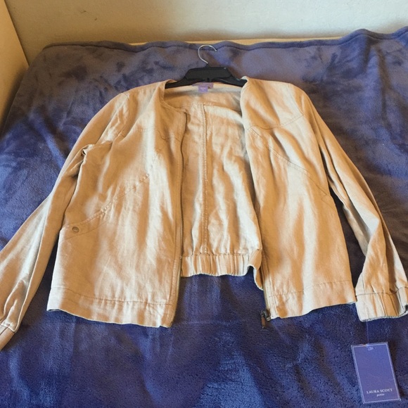 Tan Petite Linen Zipfront Jacket. Never Worn. Non Smoking/ No Pet household.