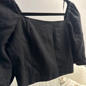 Linen black crop top with balloon sleeves. Gently worn a couple times. Has a side zipper.