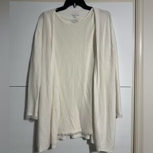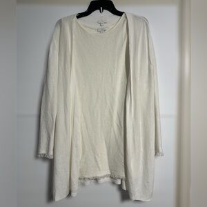 Linen blend J. Jill cardigan & top fringed sleeves size large set