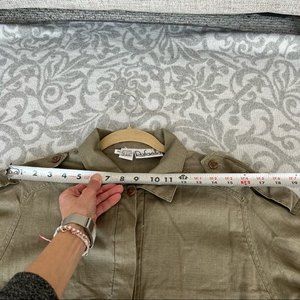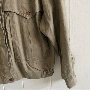 Absolutely beautiful linen blend jacket , bonnet, military style . Excellent preloved condition, couple small stains( haven’t tried to clean ), please review all photos before purchase. Smoke and pet free home. Great for the spring and summer