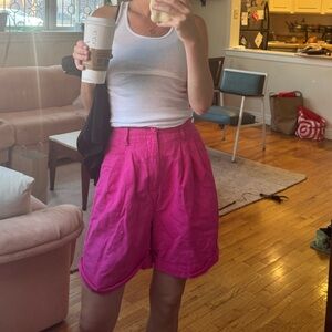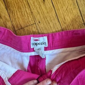 They’re a great bright pink linen blend short with a cuff at the end. High waisted, fit a 26” waist.