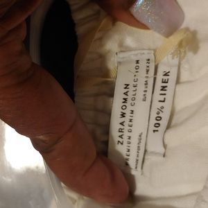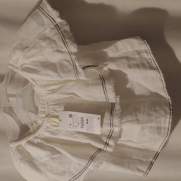 zara woman cream and with black stitching! 100% linen crop top, distressed edging . summer chic and fun!
