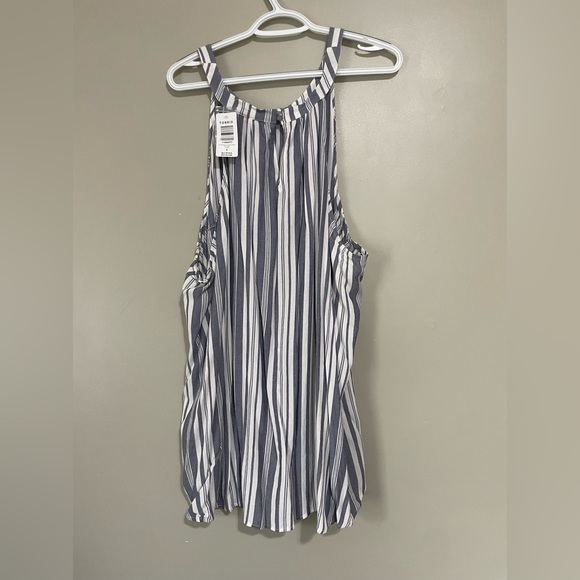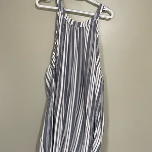 High neck line. Sleeveless.