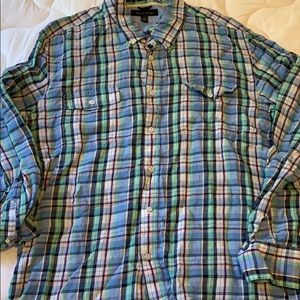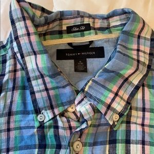 100% linen men’s plaid button down. Excellent condition. Slim fit XL