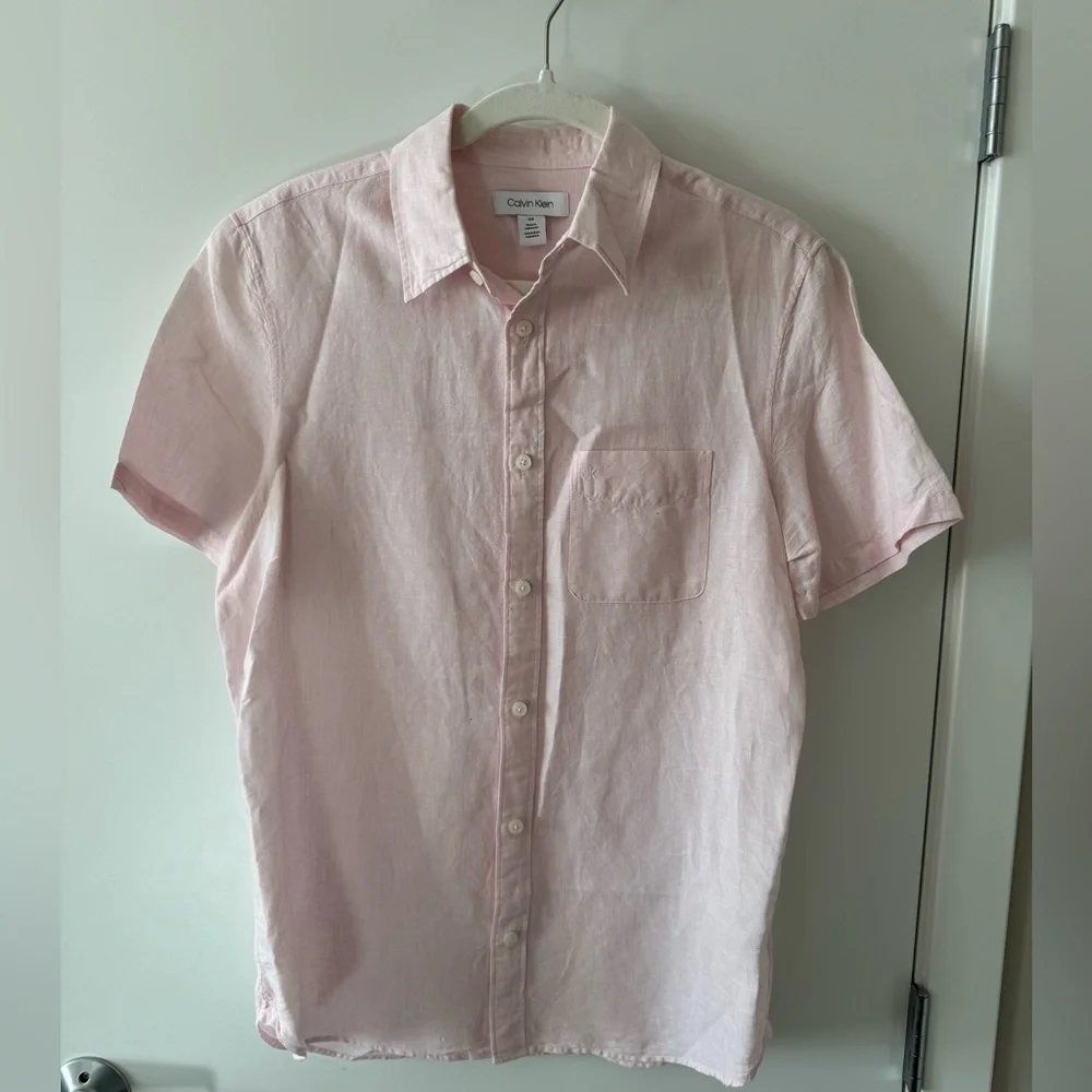 Light pink linen short sleeve button down in good condition. Check out my shop to bundle!