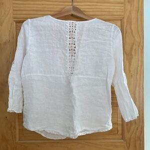 Linen top with lace detail in back. The sleeves can be rolled up.