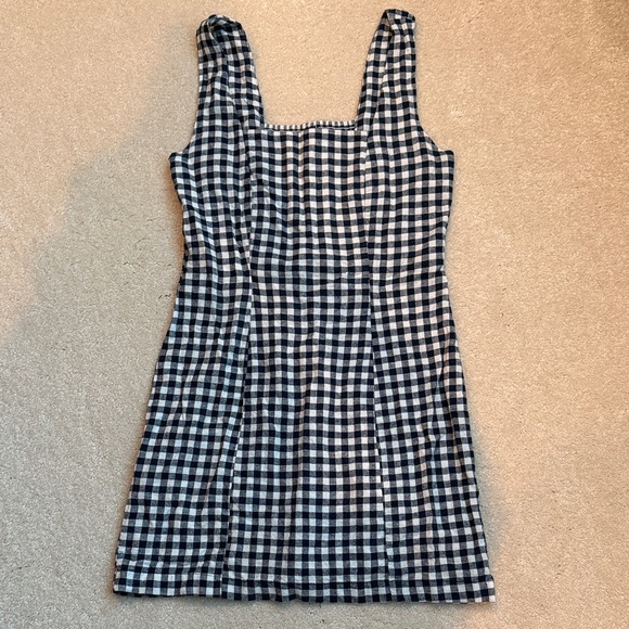 Blue and white linen checkered dress. Worn a few times. No damage. From home with no pets or smoke.
