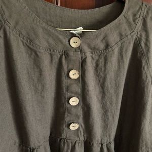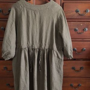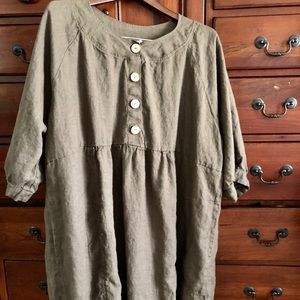 I wore this dress once last winter and then I lost a lot of weight so it is too large. I would say fits like an xxl but could fit as an xl-xxl. Brown. It has pockets and a drawstring on the back and at the bottom. I measured beneath the buttons and it is 25 inches across 37 inches long. Notice the small hole pictured on the seam. It actually arrived that way and they gave me a small discount to get it repaired which I did not do. Open to offers.