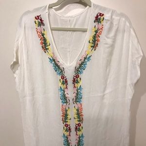Linen embroidered beach cover-up. Never worn OS