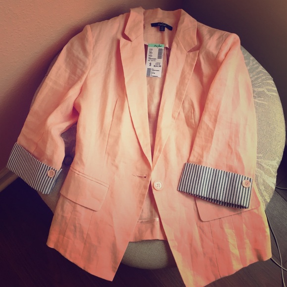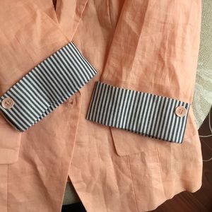 Cute striped sleeve blazer. It's lightweight with no lining. Color is light peachy orange.