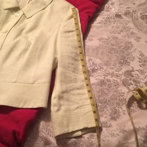 Light limeish yellow linen jacket. Gabrielle Strehle STRENESSE. MADE IN HUNGARY. Says size 10 but looks smaller. Measurements in pics.