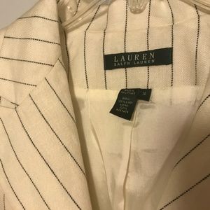 Classic jacket by Ralph Lauren. Never worn. Cream with blue stripes. Size 14