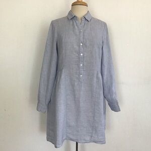 Linen lagenlook blue longsleeve tunic/coverup shirtdress pockets oversized S NWT